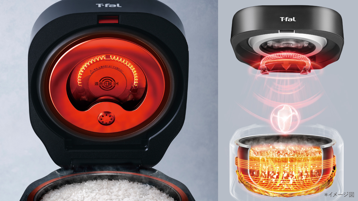 ティファール独自のふたから放出される遠赤外線が一粒一粒のお米に直接熱を届け、本体に設置された高火力IHが釜の下部からしっかりと包み込むように素早く炊き上げ、粒立ちの良い、旨みの凝縮したごはんができあがります。一般的なIH炊飯器や圧力IH炊飯器との違いとは?