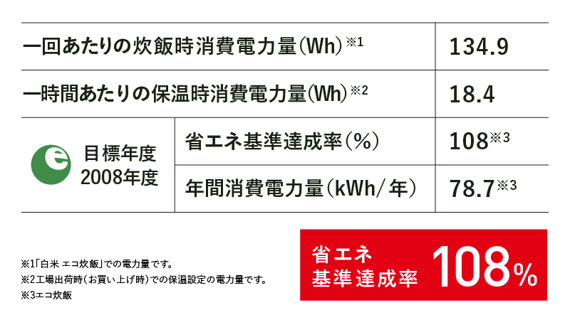 | 炊き具合 | 4種類 (やわらか・ふつう・かため・おこげ) |