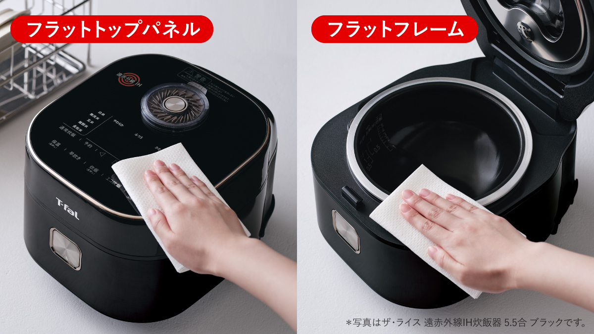 トップパネルは凹凸が少なく、内側フレームはフラットなので、汚れてもさっと拭き取るだけ。お手入れが簡単です