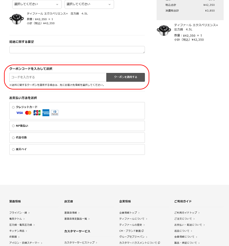 お手持ちのクーポンコードをご入力いただき、「クーポンを適用する」をクリックしてください。